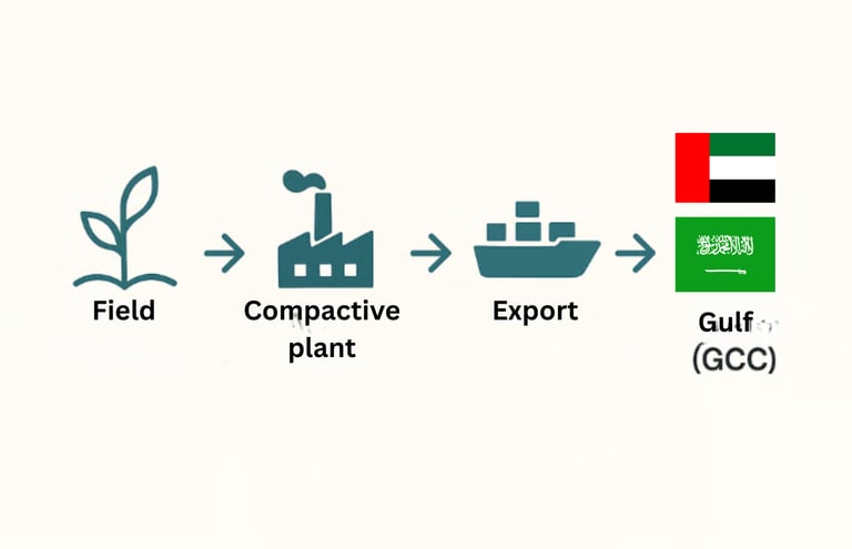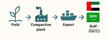 We transform production projects into complete export chains, with processes that meet the standards demanded by the Gulf and Asian markets.