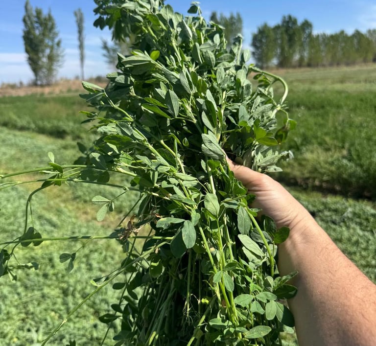 This region combines land availability, access to water resources, and dry or semi-arid climates that favor the production of high-quality alfalfa with good fiber and protein content. Low ambient humidity and solar radiation allow for efficient irrigation management and forage conservation.